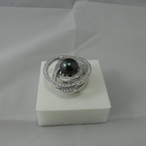 bague argent rhodié et perle de Tahiti
